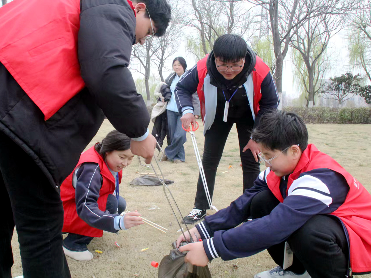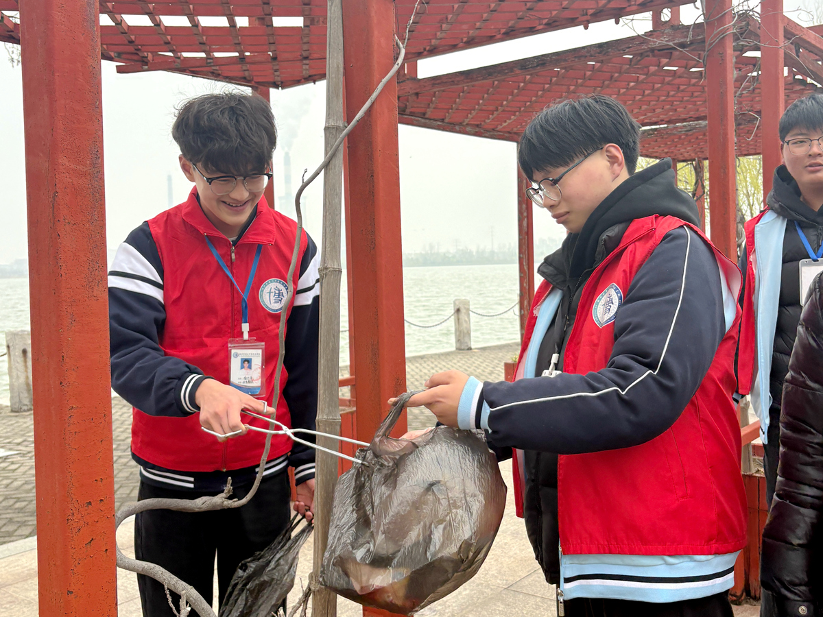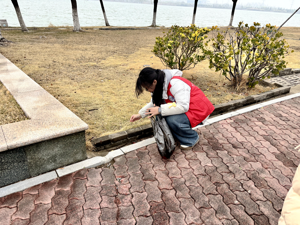 活动中,同学们手持夹子、垃圾袋,分工协作、认真细致,沿着步道、草坪、湖边清理纸屑、塑料袋、烟头等垃圾,不怕脏、不怕累,用实际行动美化环境。